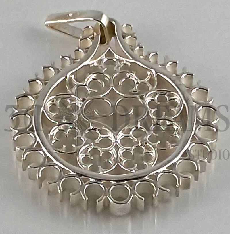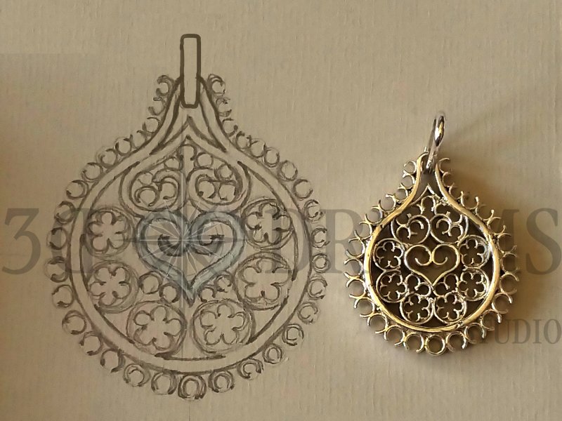 On a first stage, its design was produced with a sketch inspired by the beautiful architectural details in the Church of Santa Maria de Belém, in Jerónimos Monastery. A second stage followed using a specific parametric 3D design software – Fusion and AutoCAD – that was applied together with the 3D Printing Technology on a Formlabs 3D Printer producing a castable wax resin piece. On a third stage, this resin piece was handed over to the work of a certified traditional goldsmith that transformed it into a precious silver Jewel. These three steps were carefully executed and monitored with a special attention to every detail, so that the result would be a unique Jewel with a special meaning and top quality.