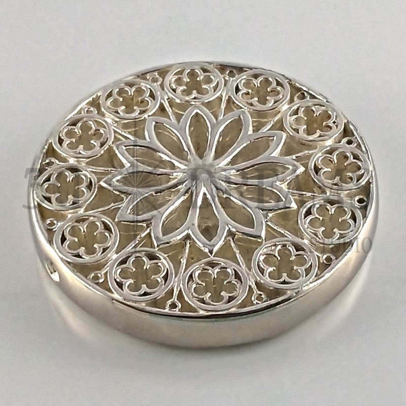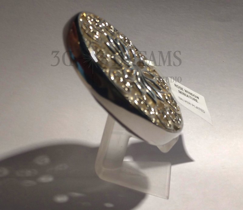 The “Rose Window Flower” Miniature represents this magic light entering inside the Jerónimos Monastery. It is made of silver-plated brass, with a polished finish and we offer you a 3D printed stand where you can exhibit your Miniature. It has 60mm in diameter and an approximate weight of 108g in silver-plated brass, certified by a professional silversmith that transformed it into a precious Jewel.