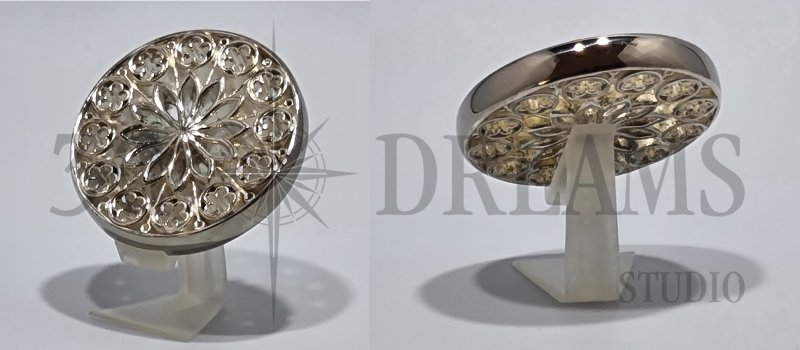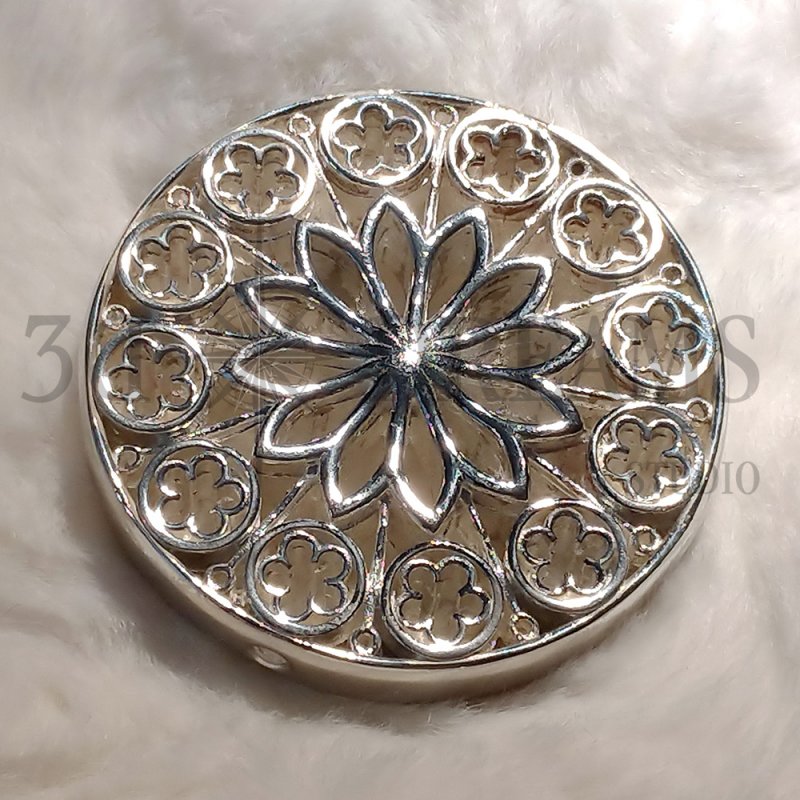 Numa primeira fase, o seu design foi produzido com um esquisso inspirado nos bonitos pormenores arquitetónicos no Mosteiro dos Jerónimos. Uma segunda etapa seguiu-se aplicando a Modelação 3D com parâmetros específicos com um software de design 3D – Fusion e AutoCAD – em conjunto com a Tecnologia de Impressão 3D, numa Impressora 3D da FormLabs produzindo uma peça em resina própria para Joalharia. Numa terceira fase, esta peça foi entregue numa Oficina de Joalharia, nas mãos de um artesão certificado de Joalharia, e que a transformou numa Jóia em prata. Estes 3 passos foram cuidadosamente executados e acompanhados c/ especial atenção a todos os detalhes, p/ que o resultado fosse uma Jóia única com um significado especial e qualidade de topo.
