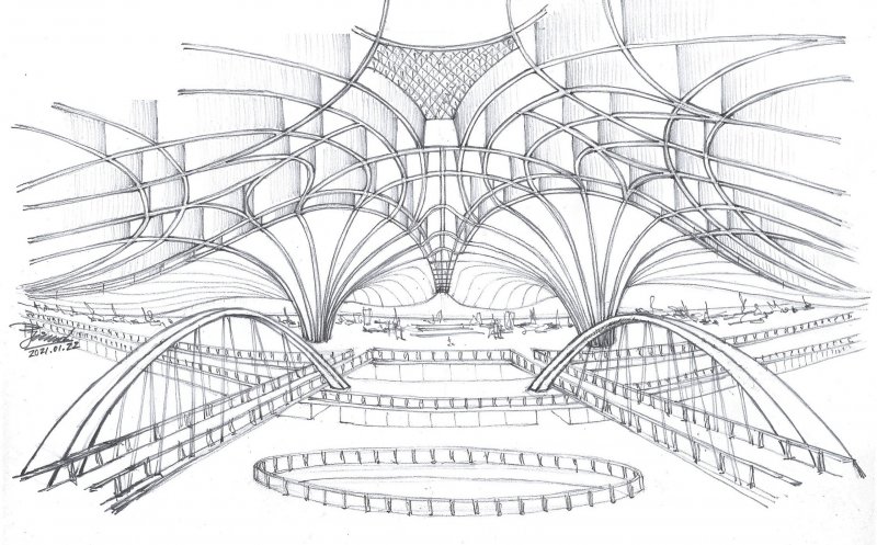 More recently, in 2019, the Beijing Daxing International Airport, in China, was inaugurated following the same principle, with the free-flowing curves. It’s one of the largest airports in the World and was inspired by the concept of the Hutong Chinese Houses, organizing space around a main central area. This central area has many curved beams in a large open space, that transports the traveller inside the airport into another Space and Time, into a world of the Future, confirming about what she once said “I really believe in the idea of the Future”. Zaha Hadid was a visionary architect.
